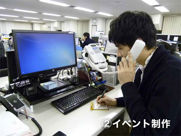 新入社員の皆さんには、まずプロダクションマネージャーとして、プロデューサーの下、企画立案から制作・実施運営に至るまで、販促活動の制作進行を担っていただきます。